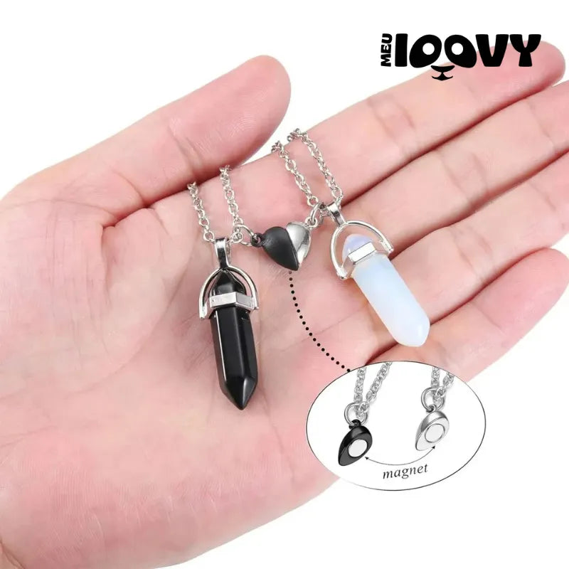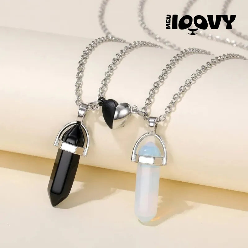 - Pingente: Formato de coração em cristal, dividido em duas metades.