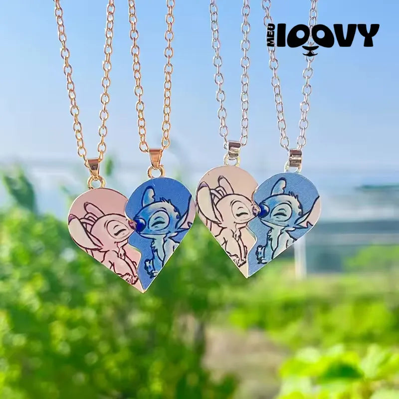 • Design Exclusivo: Pingente de coração com detalhes inspirados no Stitch e na Angel.